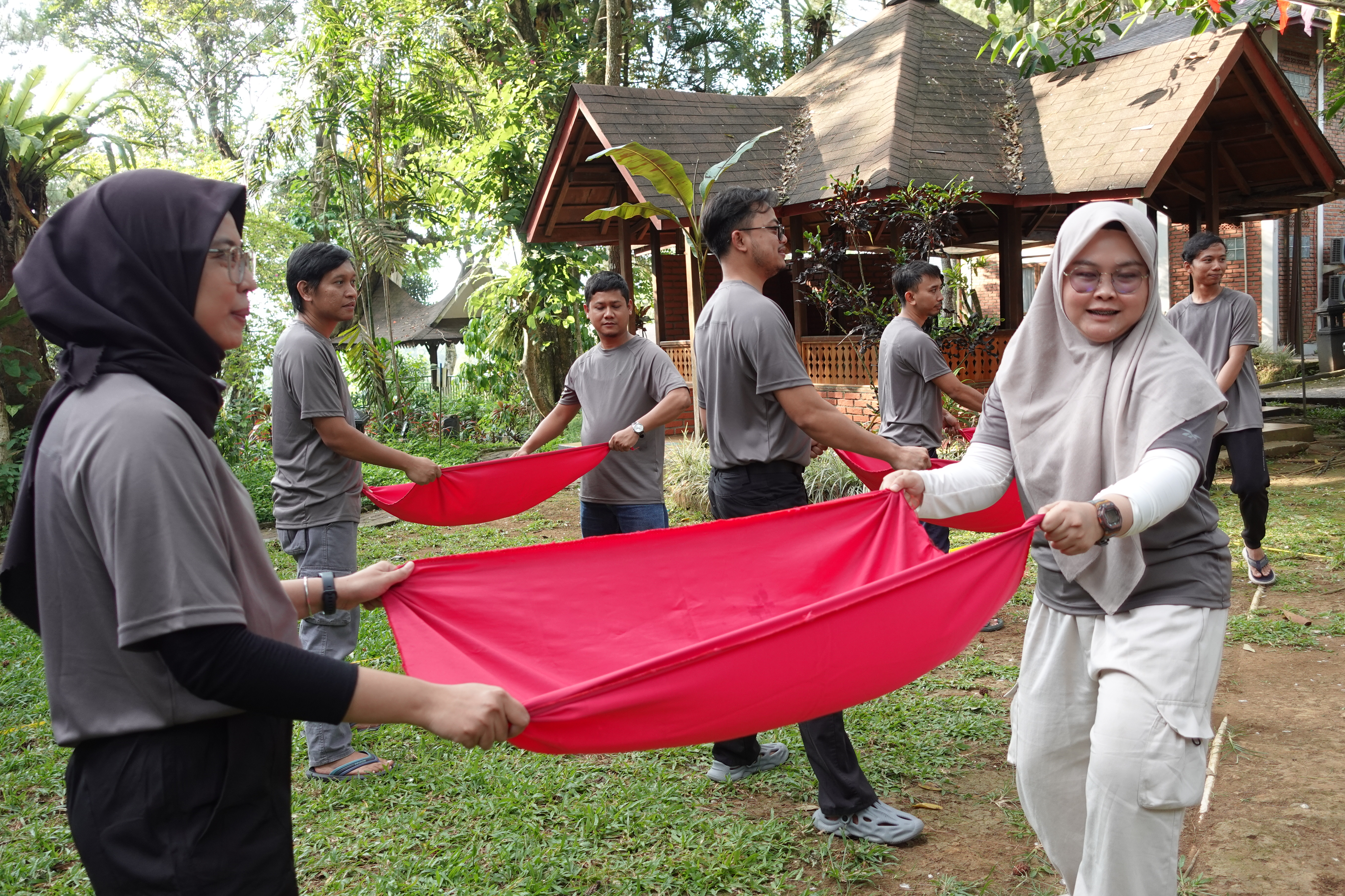 The Team Building activity was held at Jambuluwuk Resort, Bogor, for 2 days and 1 night, divided into two batches: October 26–27 for Batch 1 and November 9–10 for Batch 2. The Team Building agenda was designed to be diverse, allowing employees to strengthen their bonding and camaraderie with one another. Employees participated in several activities such as Financial Planning Training, Forum Group Discussion, Outbound & Games, Fellowship Night wearing costumes, and on the next day, rafting to boost adrenaline and team cohesion.